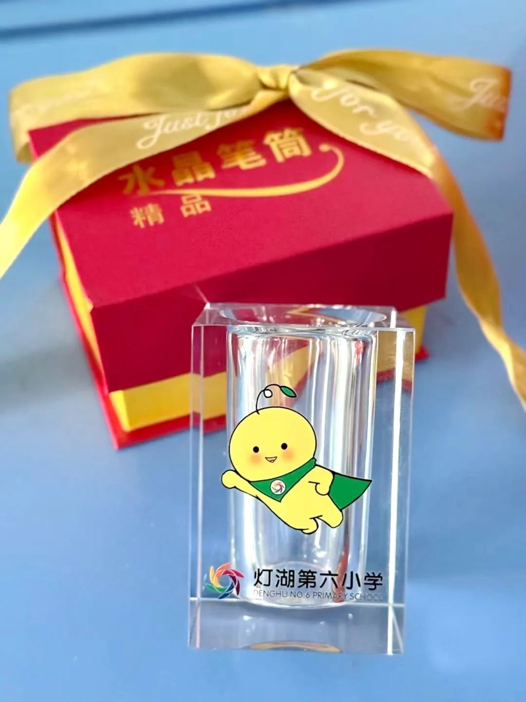 02、校长寄语暖心礼,水晶笔筒寄厚望