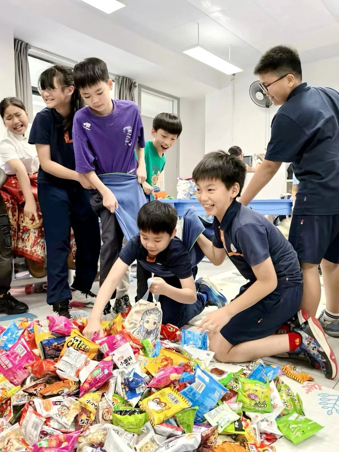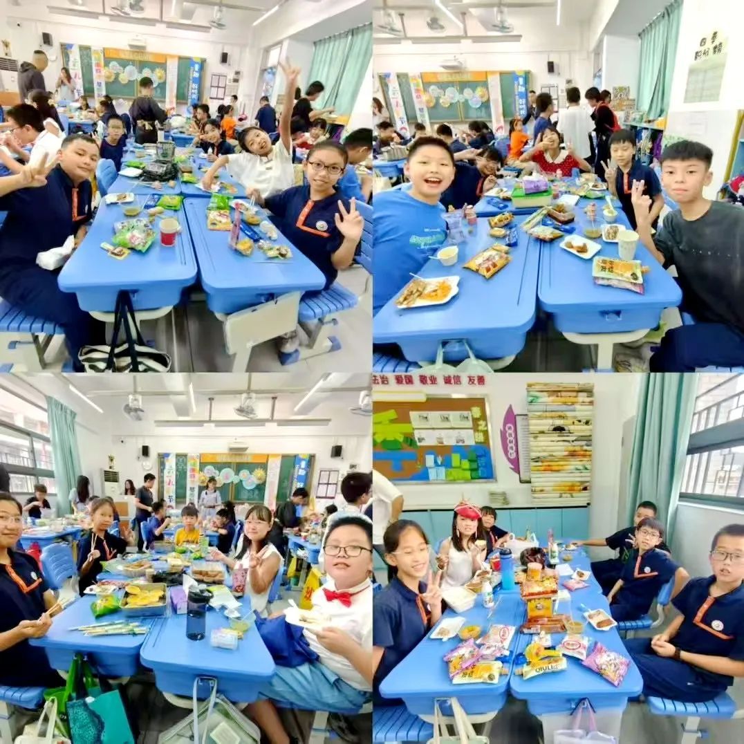 表演余热尚在,家委精心策划的“美食狂欢大会”无缝接档!教室内外香气漫溢,长桌摆满琳琅美食,零食大战等趣味游戏同步开启。孩子们穿梭分享美味、尽情畅玩,欢声笑语把校园填得满满当当,持续点燃六一欢乐!
