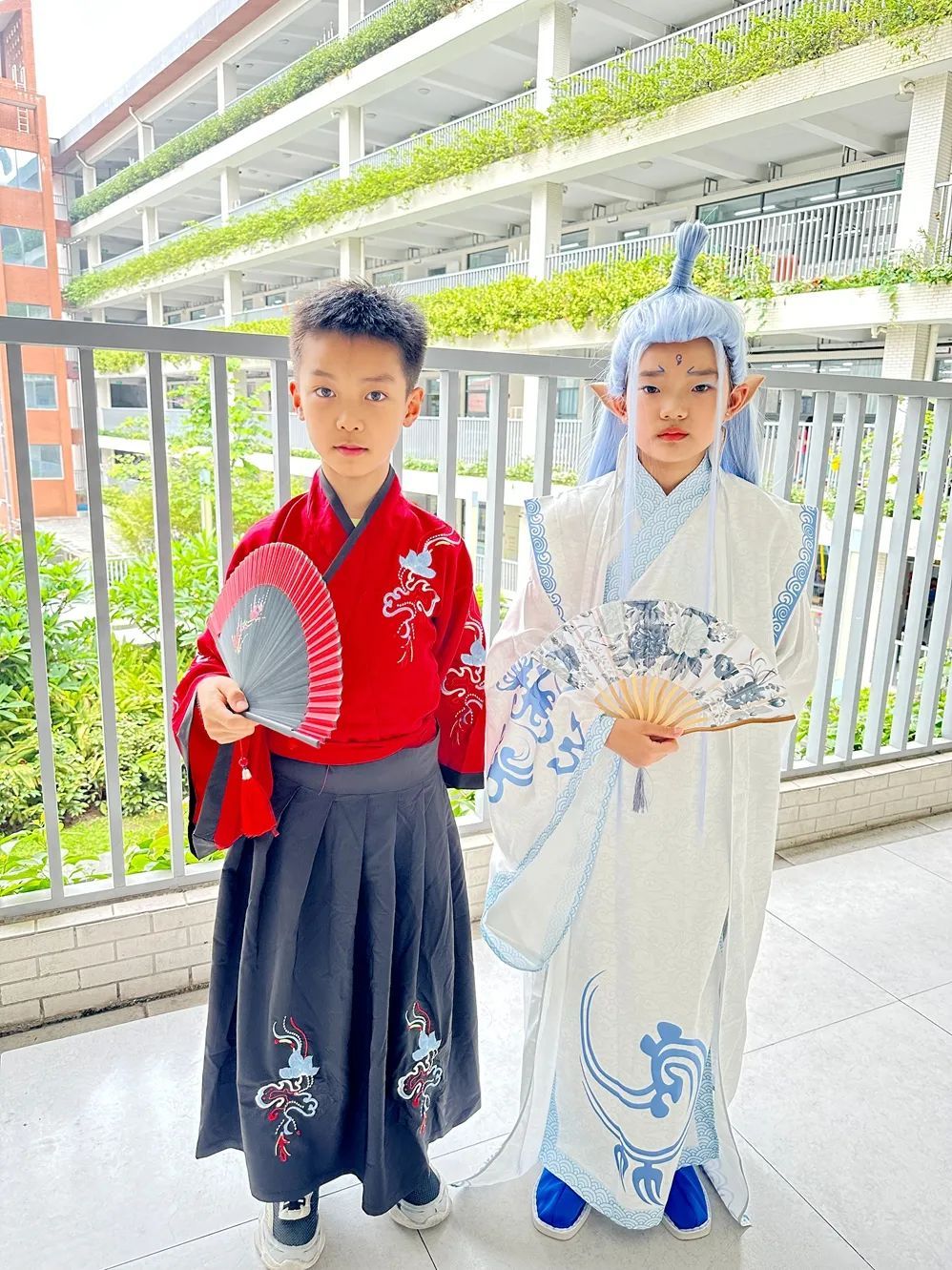 孩子们化身孙悟空、哈利·波特、哪吒、李白,身着精心准备的角色服饰,迈着自信步伐,踏上“名著星光大道”。每一次亮相,都闪耀着对经典的热爱,引全场喝彩,让名著人物“活”在校园。